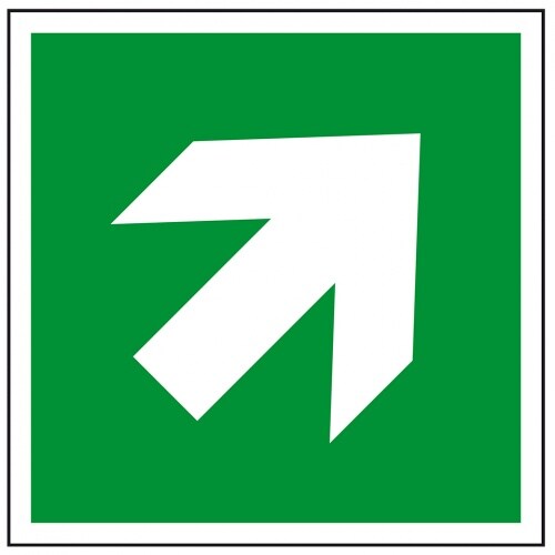 Aufkleber I Rettungszeichen Richtungspfeil diagonal, Folie, selbstklebend, 200x200mm, ASR A1.3, DIN EN ISO 3864