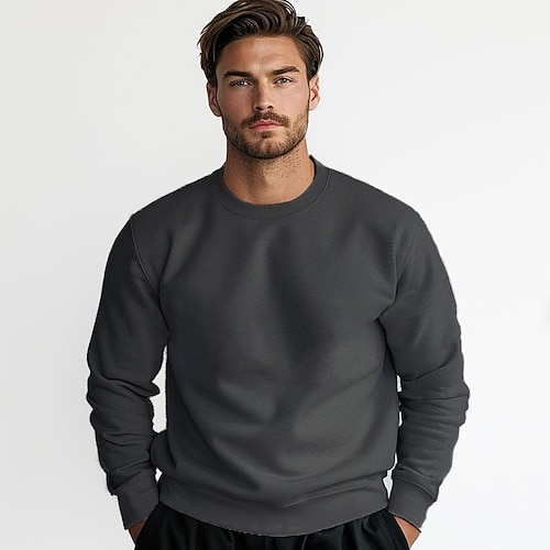 Per uomo Maglia Nero Grigio scuro Girocollo Semplice Casuale Quotidiano Sportivo senza stampa Essenziale Atletico Autunno Inverno Abbigliamento Felpe con cappuccio Felpe Manica Lunga