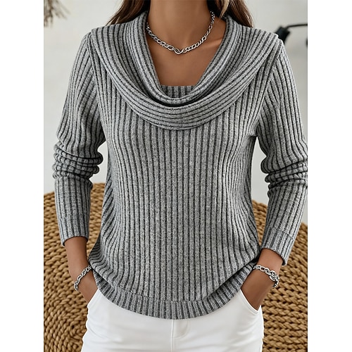 Per donna Camicia Ombre Grafico Geometrico Elegante Moderno Casual Manica Lunga Scollo a Cascata Top Regolari Quotidiano Lavoro Abbigliamento da sera Arricciato Drappeggiato Blu turchese Beige
