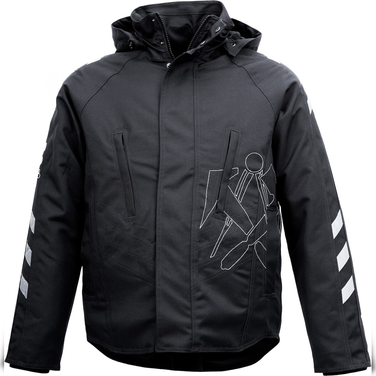 Job-Kleidung JOB-TEX Dachdecker-Jacke BREMEN Schwarz Winterjacke wasserdicht Zunftlogo S
