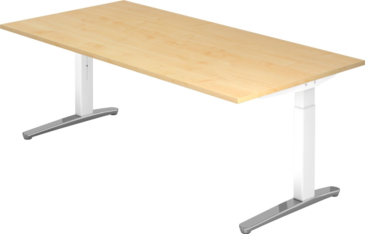 Hammerbacher Schreibtisch C-Fuß 200x100cm Ahorn/Weiß-Alu poliert