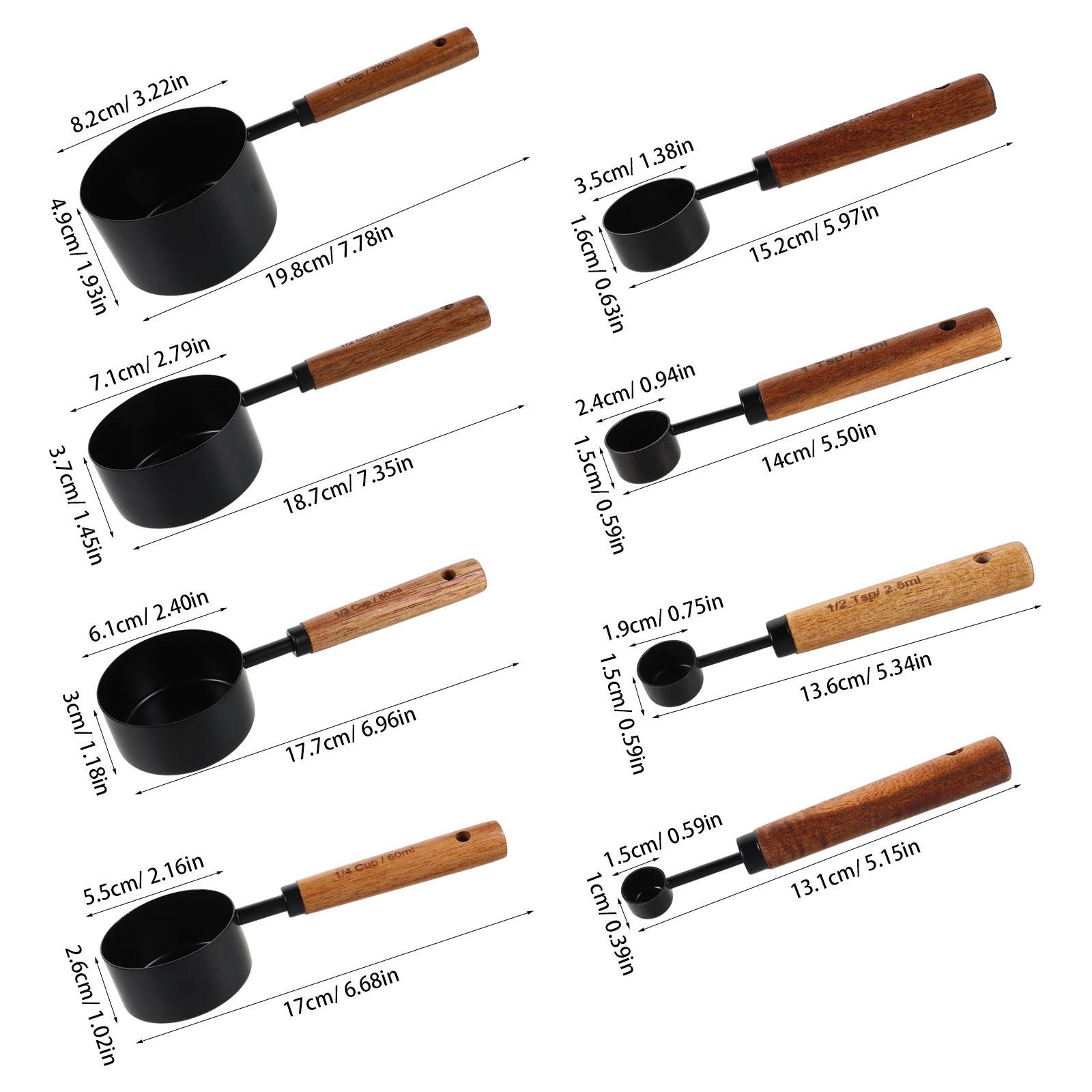 8-teiliges Edelstahl Küchenmesslöffel und Messbecher Set mit Holzgriff zum Backen und Kochen Präzise Messung von flüssigen und trockenen Zutaten silbe