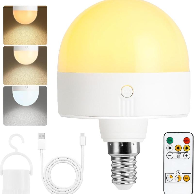 Oppladbar lyspære med timer og fjernkontroll, Batteridrevne lyspærer som kan dimmes med magnetisk base, E14 avtakbar ladbar LED-pære, Lamper uten fast