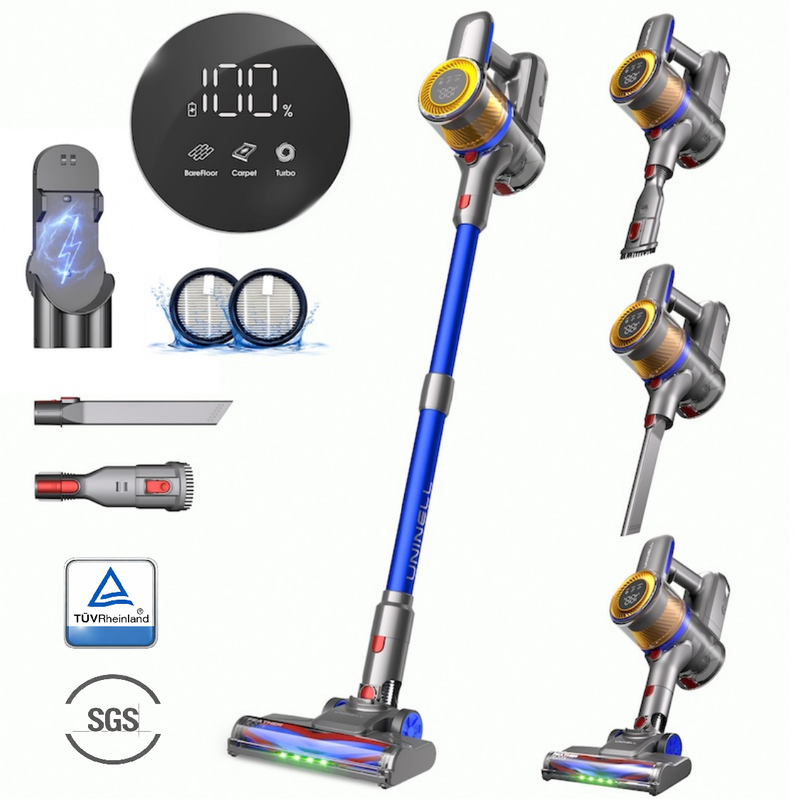 UNINELL HOME UV1 Aspirateur Balai sans Fil, Aspirateur Puissant 45KPa/450W pour Poils d'Animaux, Batterie Amovible 60 Min, Léger, Autoportant et Anti-Emmêlement pour Maison