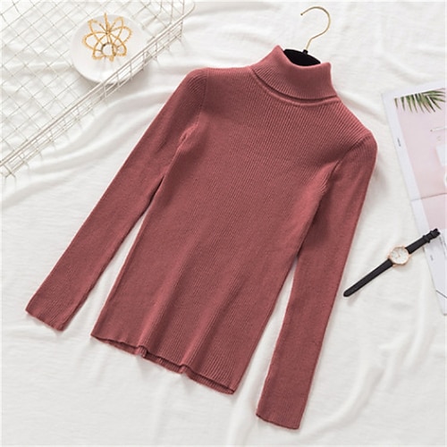 Per donna Pullover Maglione Moda Informale Morbido Tinta unica A coste A collo alto Oversize Manica lunga Maglia Giornaliero Per eventi Per uscire Rosso ruggine Rosa viola Autunno Inverno