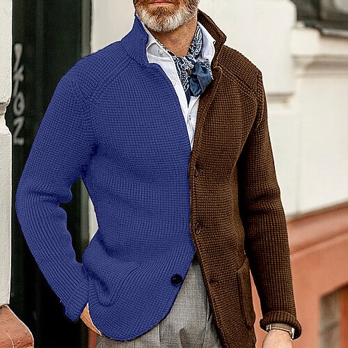 Per uomo Maglione corto Cardigan Maglione Cappotto cardigan Giacca cardigan A coste Maglia Con tasche Color Block Color Block Collo Casual quotidiano Di moda Casual / quotidiano Abbigliamento Autunno