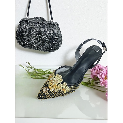 set di scarpe con tacco e pochette da donna in strass verdi - eleganti décolleté con cinturino posteriore e borsa per cocktail party e occasioni formali