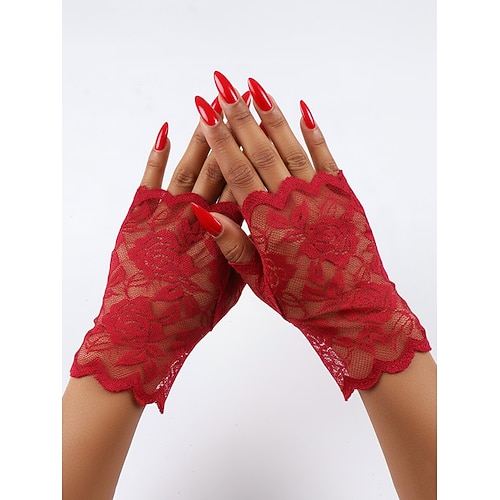 guanti in pizzo da donna, materiale in pizzo di poliestere, disponibili in più colori, perfetti per matrimoni, feste e occasioni speciali