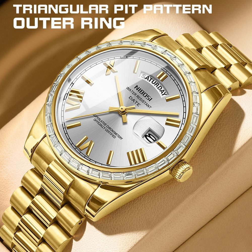 NIBOSI Mode Herenhorloges Topmerk Luxe Polshorloge Dag Datum Miyota Quartz Horloge Heren Waterdicht Horloge rosé gouden kleur/wit