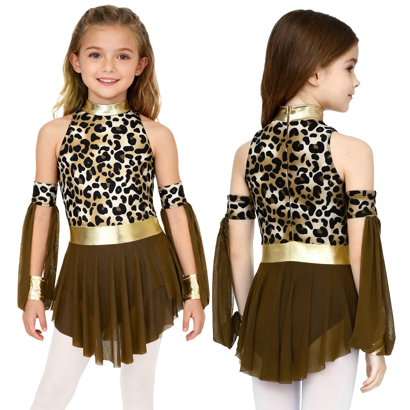 Robe Cave Imprimé Léopard Filles Col Montant Sans Manches Dos Fermeture Éclair Invisible Culotte Intégrée avec Manches Amovibles Costume cm