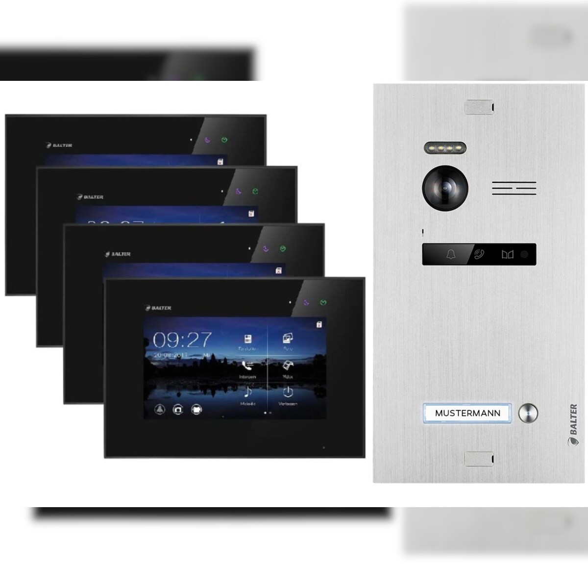 Balter Home Balter EVO Video-Türsprechanlage für Einfamilienhaus mit 4x 7 Zoll Monitor Silber Schwarz