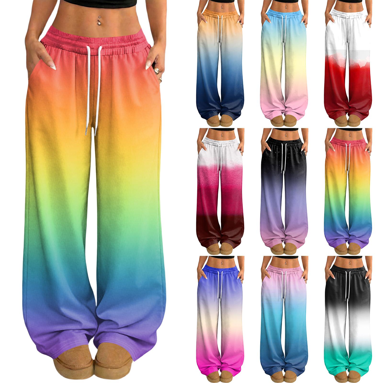 Kvinners avslappede og moteriktige trykte elastisk midje løse vide ben bukser cm varm rosa farge