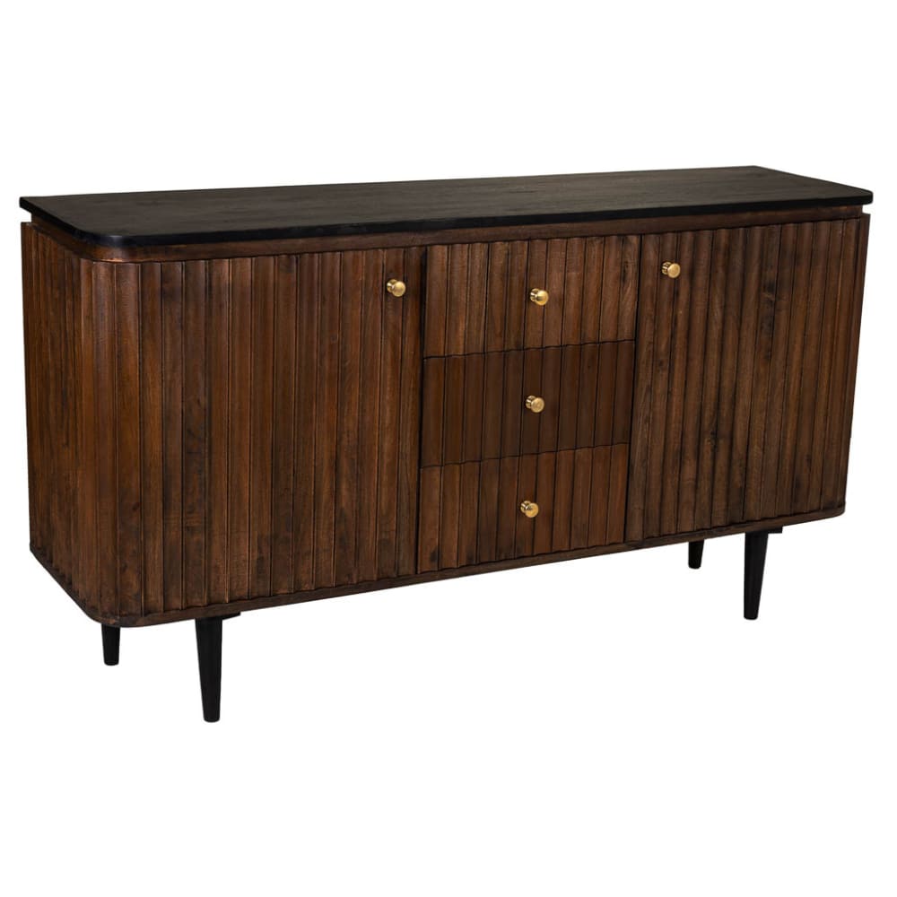 Credenza in legno con 2 ante e 3 cassetti, finitura artigianale nera