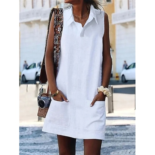 Per donna Blu Nero Bianco Estate Primavera Mini Abito Abiti in cotone e lino Abito Camicia Vestito Casual Essenziale Moderno Quotidiano Weekend Vestibilità comoda Semplice Colletto a Camicia