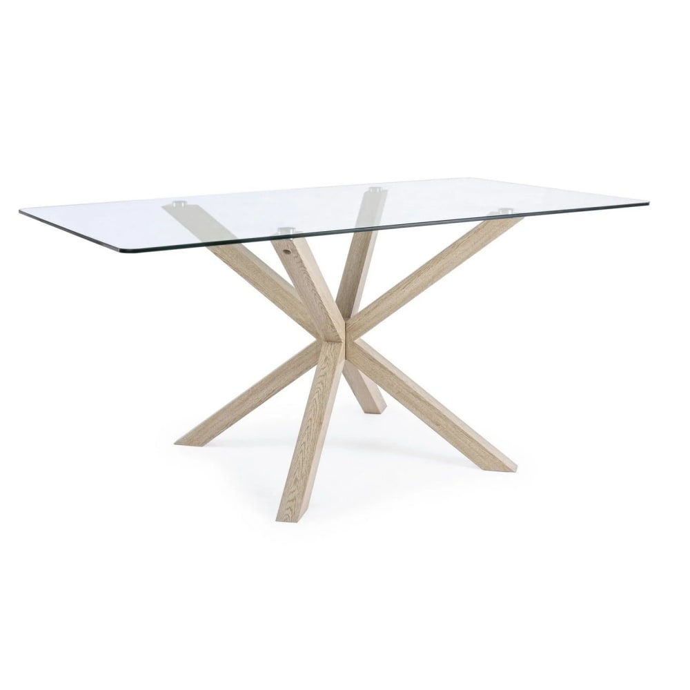 Tavolo rettangolare gambe in legno, piano in vetro 160x90cm