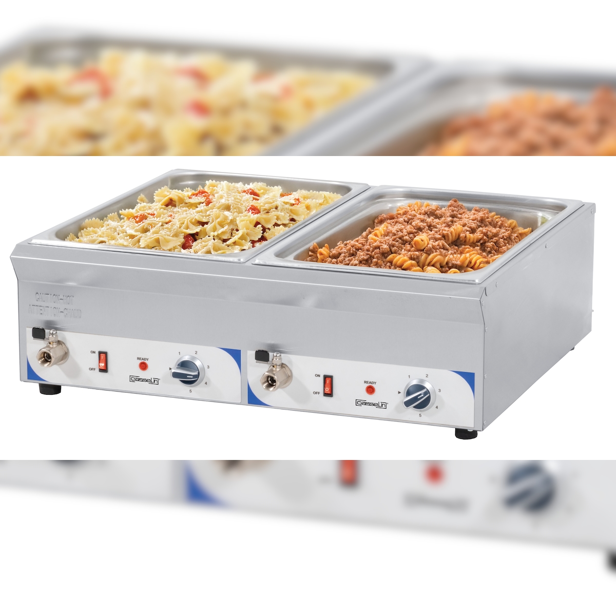Romux® Bain Marie Elektrisch 2 Behälter GN 1/2 Tischgerät aus Edelstahl mit Ablasshahn und Temperaturregler 30-110°C | Wasserbad Gastronomie - 2000W