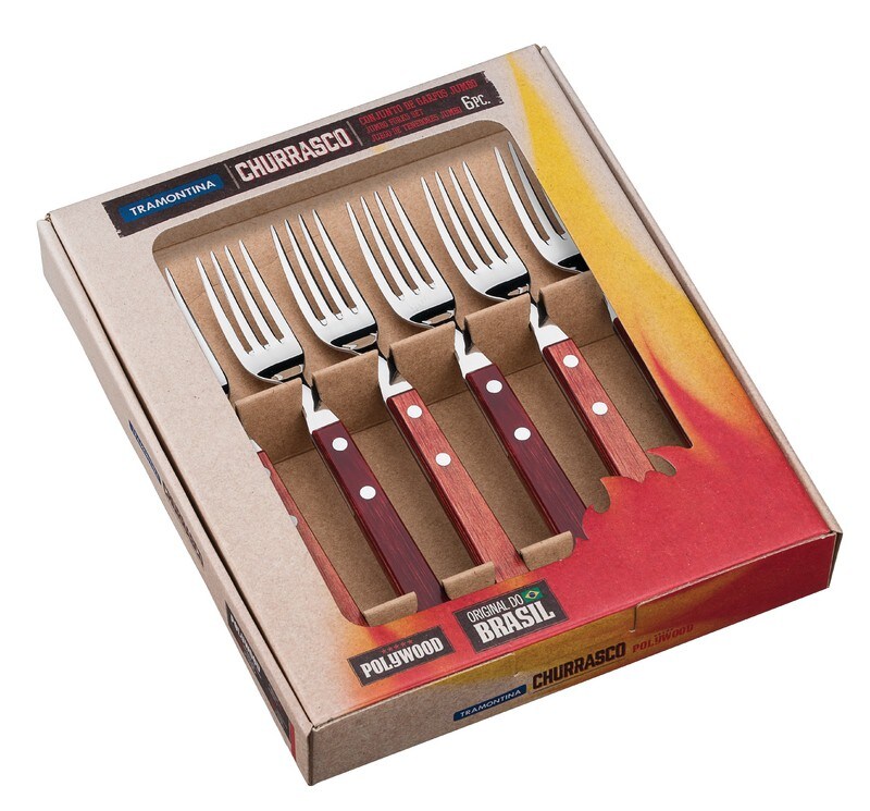 Tramontina Steakgabel JUMBO, 6 Stück, Edelstahl, Holzgriff FSC, spülmaschinenfest