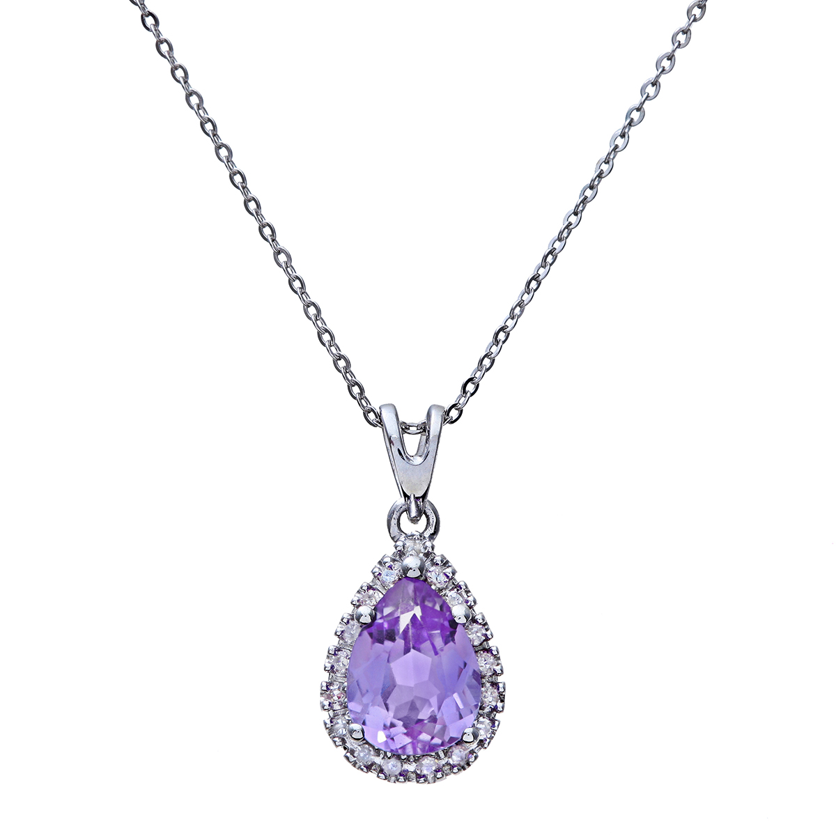Diamant L'eternel Womens 9ct White Gold Diamond Pendant With Teardrop Shaped Amethyst Stone Chain of 46cm - One Size