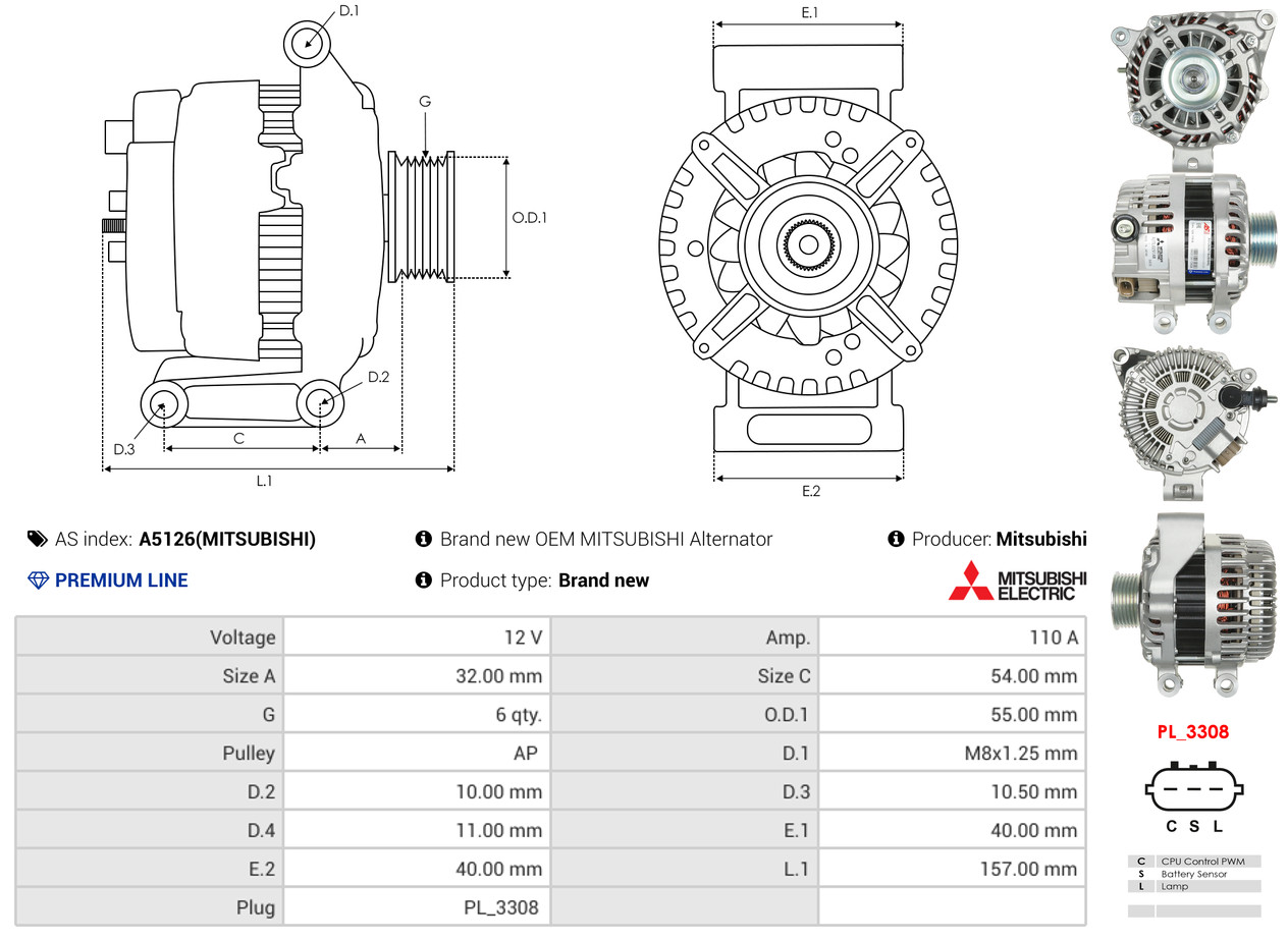 AS-PL Generator A5126(MITSUBISHI) 12V 110A für MITSUBISHI SUBARU 23700-AA700 A2TL0091 23700-AA701