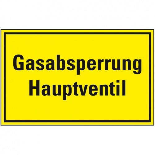 Schild I Hinweisschild Gasabsperrung Hauptventil, Kunststoff, 300x200mm