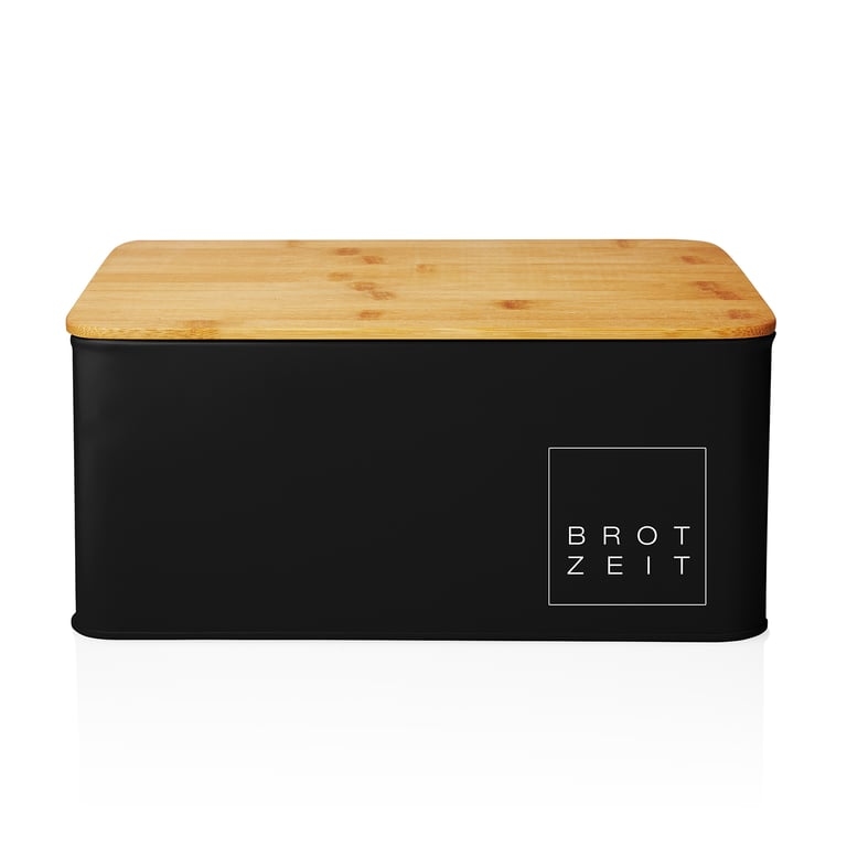 Lumaland Cuisine Brotkasten aus Metall mit Bambus Deckel - Rechteckig - 30,5 x 23,5 x 14 cm - Schwarz