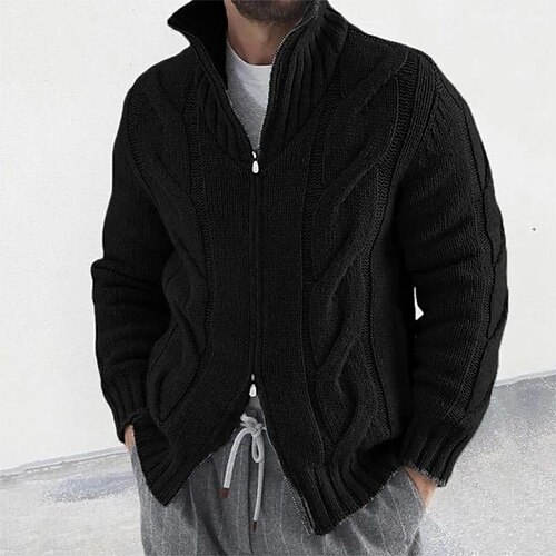 Per uomo Felpa Cardigan Treccia Maglia Top Regolari Lavorato a maglia Semplice Collo Alto Vacanza Moda Casuale Abbigliamento quotidiano Abbigliamento Primavera Autunno Nero Rosa S M L