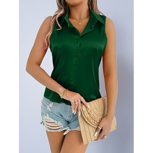 Per donna Camicia Camicia in raso Blusa Maglietta senza maniche Bottoni Semplice Elegante Classico Moderno Senza Maniche Colletto a Camicia Top Regolari Quotidiano Ferie Uscire Nero Bianco Viola