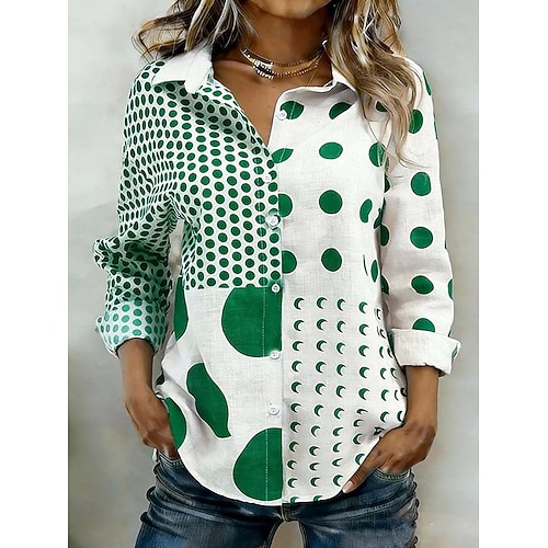 Per donna Camicia Bottoni Stampato Geometrico Vintage Elegante Moderno Manica Lunga Colletto a Camicia Top Regolari Quotidiano Blu Rosa Viola Verde Autunno Inverno