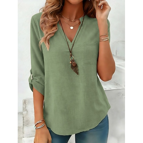 Per donna Camicia Camicie di cotone e lino Camicia casual Blusa Semplice Elegante Classico Moderno Manica Lunga Scollo a V Top Regolari Quotidiano Ferie Uscire Blu Giallo Viola Verde Cachi Primavera
