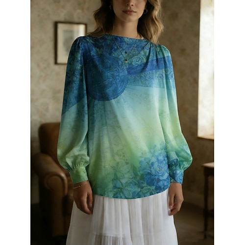 Per donna Camicia Blusa Bottoni Floreale Elegante Moderno Casual Manica Lunga Colletto a Camicia Top Regolari Quotidiano Ferie Uscire Blu Estate Primavera