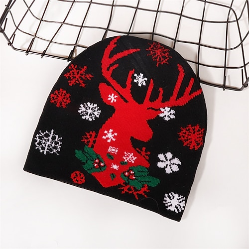 Per uomo Unisex Berretto Cappelli Invernali Cappelli di Natale Berretti 骷髅头毛线帽 Nero Bianco Fibre Acriliche Jacquard Lavorato a maglia Accogliente Natale Festival Ogni Fiocco di neve Caldo
