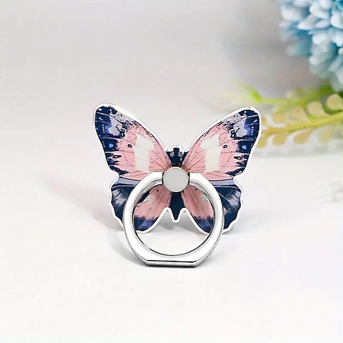 Supporto ad anello per telefono con motivo a farfalla - poggia dita in metallo con rotazione a 360° e design ad anello con manopola per una presa sicura