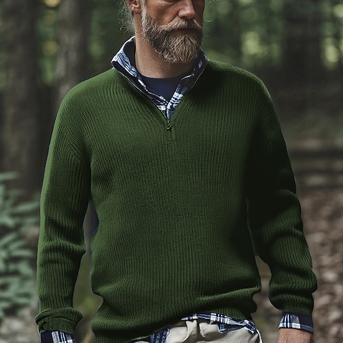 Per uomo Felpa Maglione Maglioni con zip a un quarto Maglione con zip a un quarto A Coste Maglia Top Regolari Lavorato a maglia Slim Fit Semplice Collo Alto Maglieria Contemporaneo Casuale