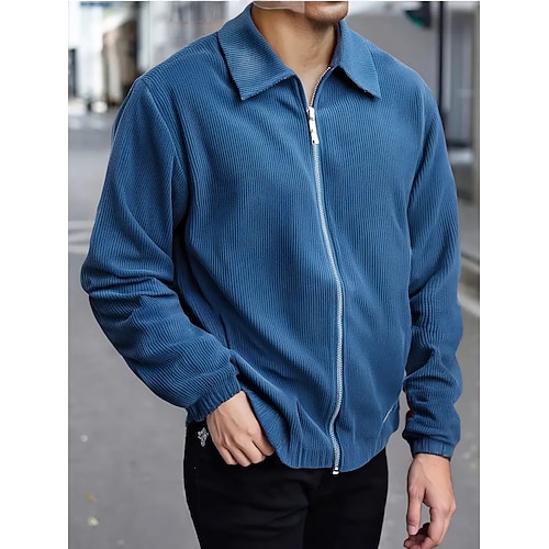 Per uomo Giacca Leggera Giacca in Velluto a Coste Giacca Casual All'aperto Vacanza Tasca Primavera Autunno Semplice Streetwear Elegante Collo ripiegato Regolare Blu Giacca