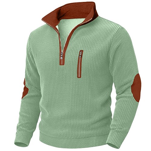 Per uomo Camicia di Velluto a Coste Maglietta Camicia a Maniche Lunghe Camicie da uomo con toppe sui gomiti Manica Lunga Collo Alto Con cerniera Autunno Autunno Inverno Blocco di colori Quotidiano