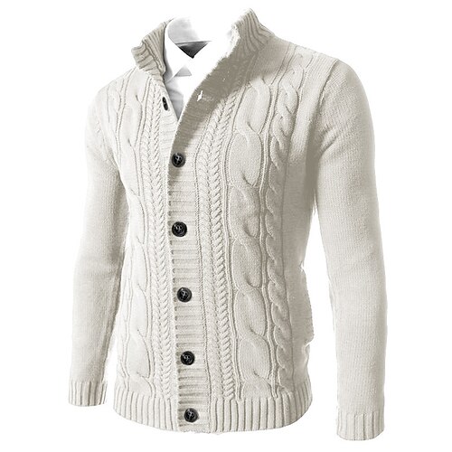 Per uomo Maglione Jacquard Felpa Cardigan A Coste Treccia Maglia Top Regolari Lavorato a maglia Semplice Collo a scialle Vacanza Moda Casuale Abbigliamento quotidiano Abbigliamento Autunno Inverno
