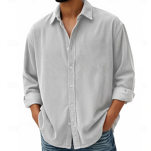 Per uomo Camicia di Velluto a Coste Nero Viola Marrone Grigio Manica Lunga Semplice Colletto Collo ripiegato Casuale All'aperto Tasca Abbigliamento Vintage Classico Casual
