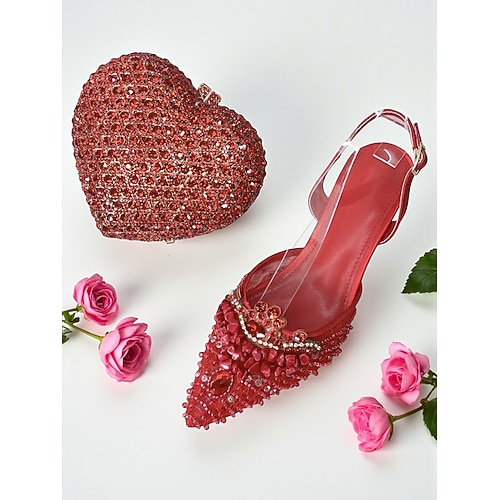 set da donna con tacchi slingback in strass dorati e pochette abbinata, completo da festa decorato con brillantini per cocktail