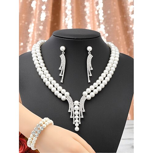 set di gioielli di perle da donna con dettagli floreali in cristallo - collana, orecchini e bracciale in stile Gatsby vintage per feste e cocktail degli anni '20