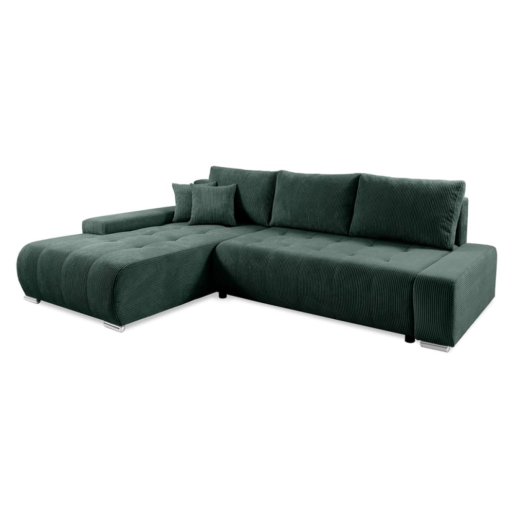 Canapé angle droit convertible coffre 5 places velours côtelé vert