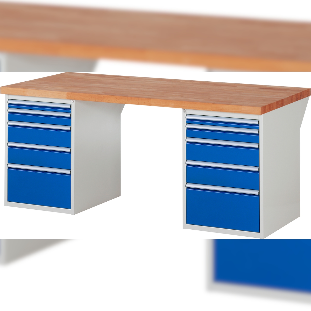 PROREGAL Werkbank Serie 7000 - Modell 7511 | HxBxT 89x200x90cm | 10x Schublade | Schubladenmaße 2x60 + 2x90 + 4x150 + 2x270mm