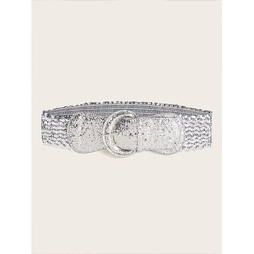 cintura elastica in similpelle con paillettes da donna - oro scintillante, perfetta per Natale e feste di fine anno