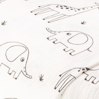 Tissu mousseline/double gaze "éléphant et girafe", blanc cassé/coloré