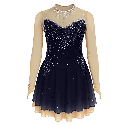 Vestito da pattinaggio artistico Per donna Da ragazza Pattinaggio sul ghiaccio Vestiti Blu marino scuro Collage Foro per pollice Retato Elastene Elasticizzato Addestramento Da allenamento
