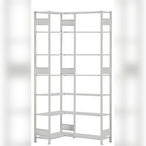 PROREGAL Eckregal | Grundregal (Felder A+B) | HxBxT 300x100x40cm | 2x7 Ebenen | Längenriegel | Lichtgrau