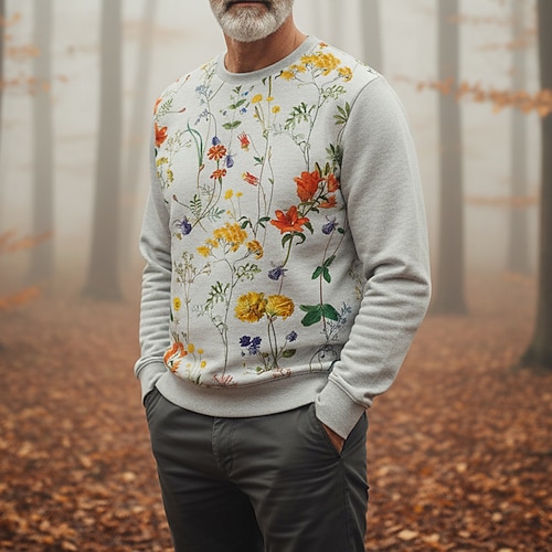 Per uomo Stampa Floreale Fiori / Piante Felpa Felpe Manica Lunga Felpa Girocollo Vintage Retrò Stampa Ferie Uscire Festival Stampato Autunno Inverno