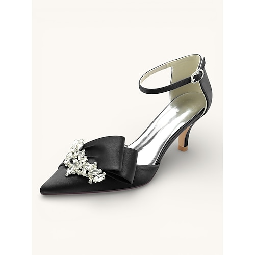 Eleganti décolleté da sposa in raso con dettagli in strass, da donna, con punta affilata, tacco basso e cinturino alla caviglia, disponibili in vari colori