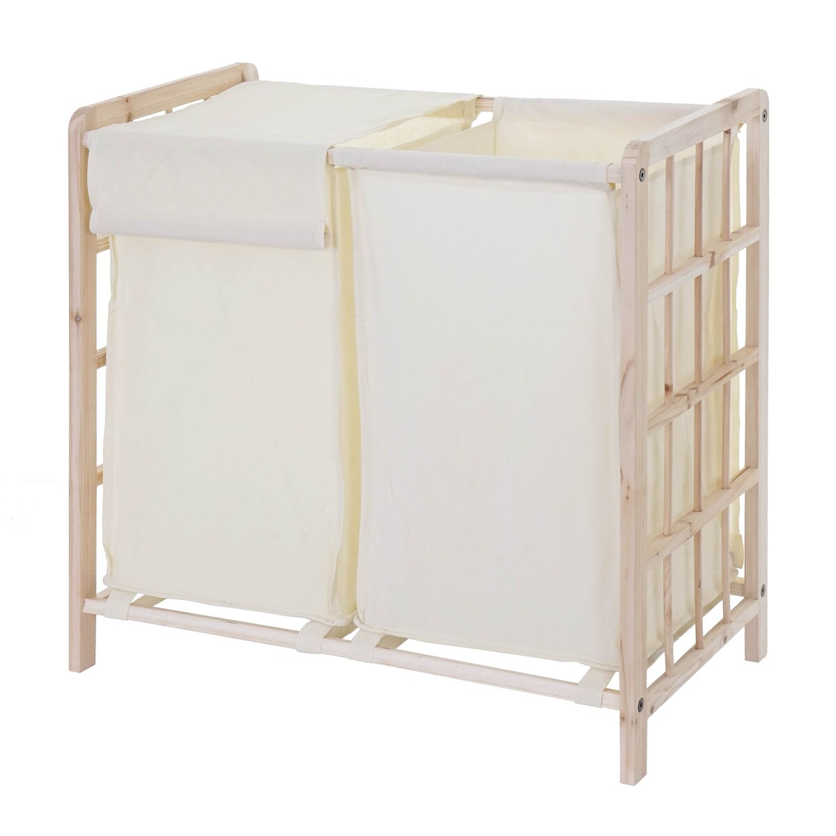 Mendler Wäschesammler HWC-B60, Laundry Wäschebox Wäschekorb, Massiv-Holz 2 Fächer 60x60x33cm 68l ~ hellbraun, Bezug creme