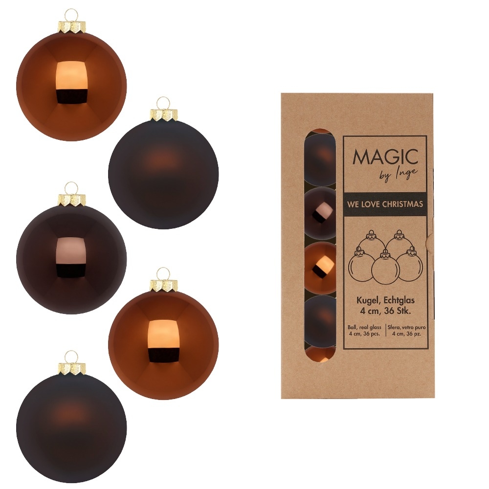 Inges Magic & Goodz 36 Weihnachtskugeln 4cm Glas Christbaumkugeln Weihnachtsbaumkugeln dunkelbraun