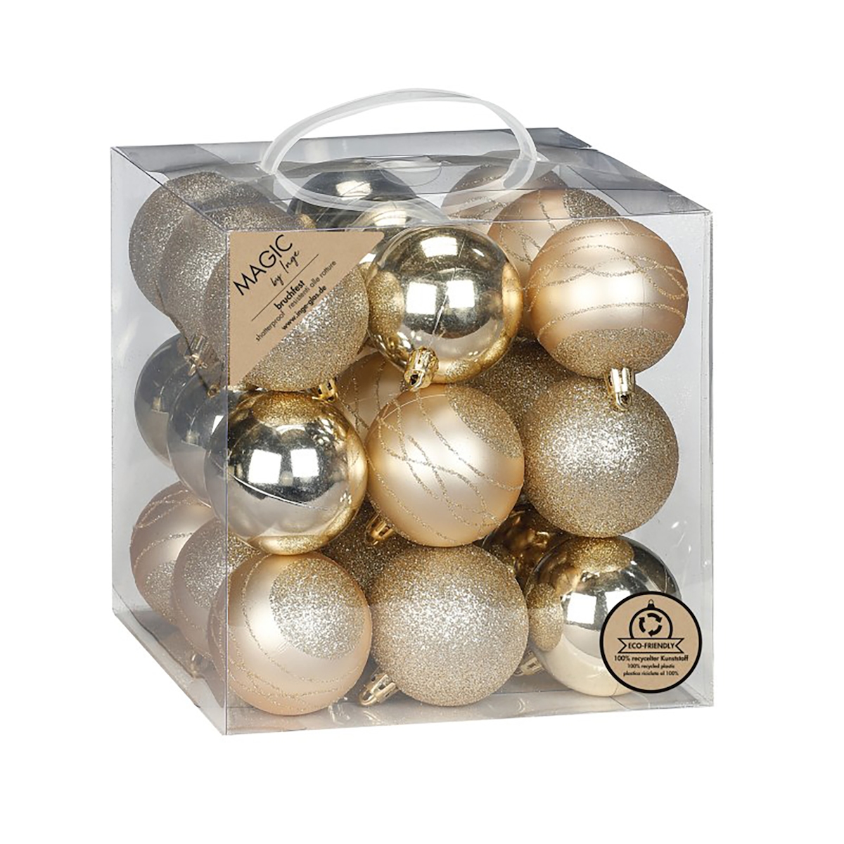 Inges Magic & Goodz 27 Weihnachtskugeln Kunststoff 6cm bruchsicher & mit Glitzer Christbaumkugeln Weihnachtsbaum Deko Weihnachtsbaumkugeln Christbaumschmuck Champagner
